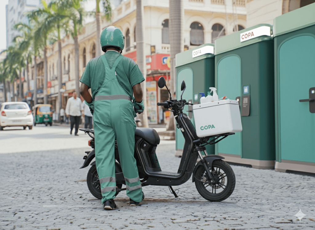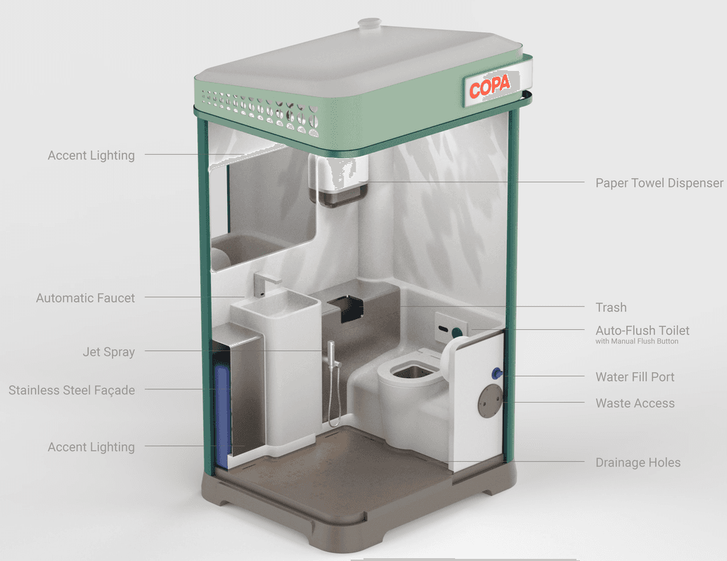 Copa was designed in California with Indian sensibilities in mind, refined through dozens of iterations to build the world’s largest and smartest microsanitation pod network.